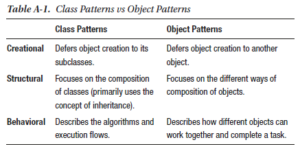 As per GoF, these patterns can be further differentiated in Table A-1.